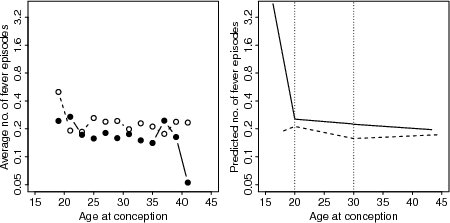 | Figure 7.2.1: R-source SAS-source (fig-ch7-poisson-fever-age) | |