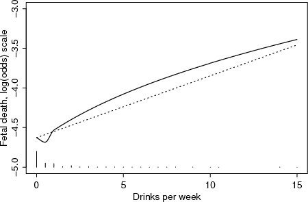 | Figure 4.1.13: R-source SAS-source (fig-feber-ch4quantcovbinout-alcologoddssmoother) | |