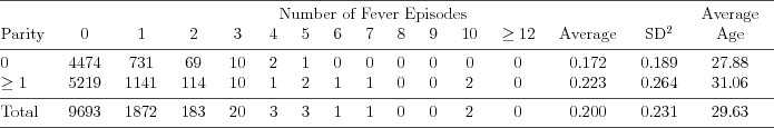 episodes - number of fever episodes in pregnancy (before interview)